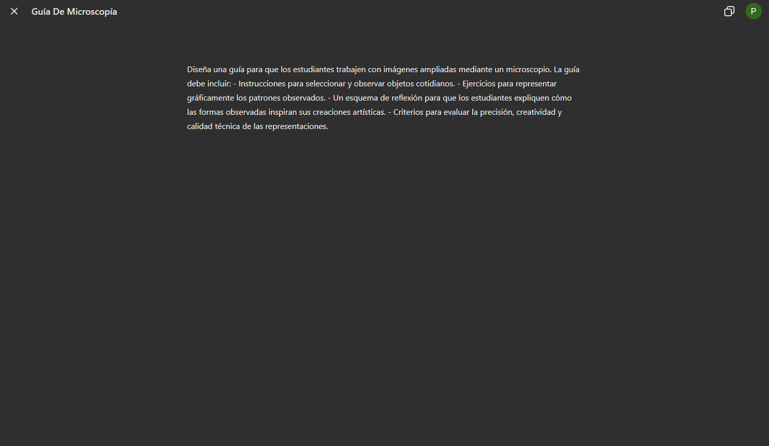- Descripción: Diseñar una guía que permita a los estudiantes observar, interpretar y representar visualmente estructuras microscópicas de objetos cotidianos.